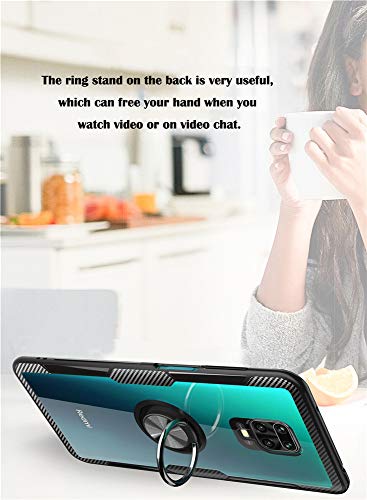 DTB TECH LAGUI Compatible for Xiaomi Redmi Note 9 Pro Case, Slim Trasparente Shockproof Scratch Cover with finger Ring Holder, for Magnetic Car Mount, Black