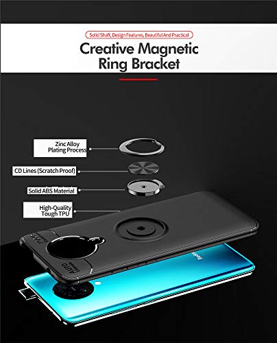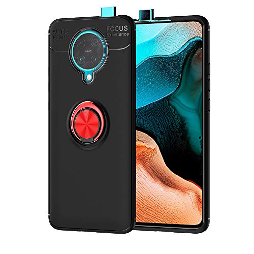 LAGUI Cover Adatto per Xiaomi Poco F2 PRO, Flessibile TPU Custodia con Anello Supporto, Dedicata al Supporti Magnetici da Auto, Rosso + Nero