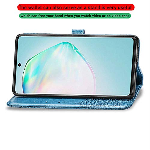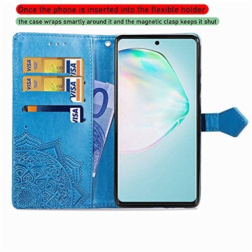 LAGUI Cover Flip a Libro Compatibile per Samsung Galaxy S10 Lite / A91, Custodia a Portafoglio con i Disegni in Rilievo, Blu