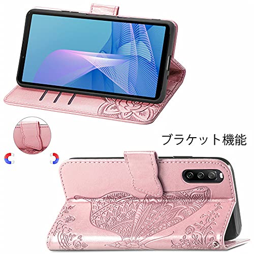 LAGUI Cover Sony Xperia 10 III Custodia a Portafoglio Fine ed Elegante Floreale con la Farfalla con Slot per Schede e Supporto Orizzontale Compatibile per Sony Xperia 10 III Oro Rosa
