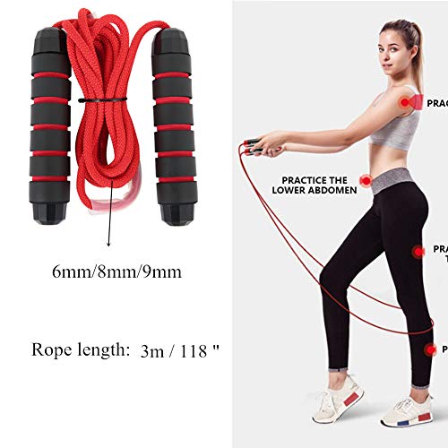 LahAd Corda per Saltare Professionale Salto Corda Funicella Corde per Saltare Corda Salto Jumping Rope Corda per Saltare Bambini per Attrezzature per Il Fitness Black-Red,9mm