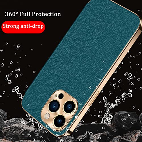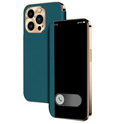 LAHappyL Custodia per iPhone 13 PRO Max/13 Pro/13/13 Mini, Cover in Vera Pelle a Libro Case con Finestra di Visualizzazione, Supporto Stand, Protezione Fotocamera,Verde,13 PRO Max 6.7"