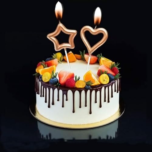 Lahviuu 2 PCS Candeline Compleanno a Cuore 4 PCS Particolari Candele di Compleanno a Forma Stellare per Decorazione della Torta di Feste di Compleanno e Matrimonio,Oro Chiaro