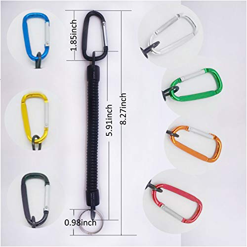 LAIBOREC Cordini da pesca, 7 pezzi retrattili di sicurezza per attrezzi da pesca a spirale, accessori con moschettone e anello diviso per pinze impugnature, canottaggio, kayak (multicolore)