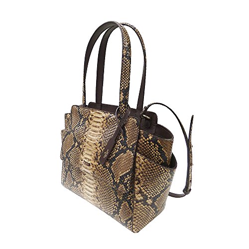 Carl Laich - Borsa A Mano Con Tracolla In Pelle Di Vitello Stampa Pitone Livrea Marrone MADE IN ITALY