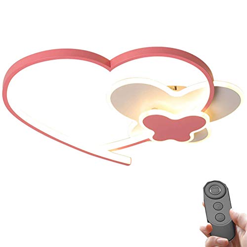 LAIDEPA LED Plafoniera Lampada da Soffitto A Forma di Cuore Plafoniere per Farfalla per Ragazze Lampadario Cartoni Animati Oscuramento con Telecomando Illuminazione Camera da Letto Interna,Rosa,50cm