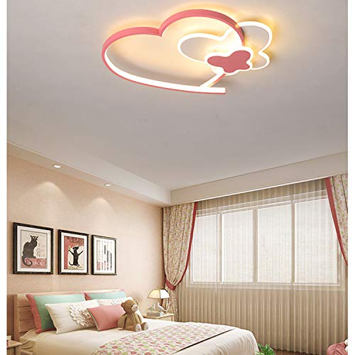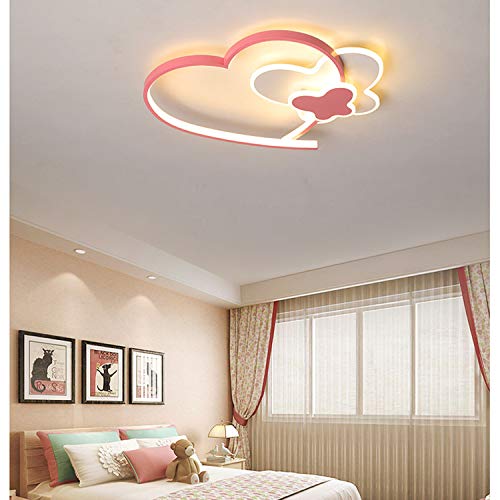 LAIDEPA LED Plafoniera Lampada da Soffitto A Forma di Cuore Plafoniere per Farfalla per Ragazze Lampadario Cartoni Animati Oscuramento con Telecomando Illuminazione Camera da Letto Interna,Rosa,40cm