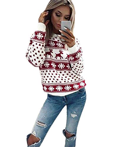 ❤ Il popolare maglione e cardigan stagionale natalizio presenta fiocchi di neve, modello di renne, pullover, maniche lunghe, girocollo. Molto morbido, caldo e confortevole, ottimo per il regalo di Natale