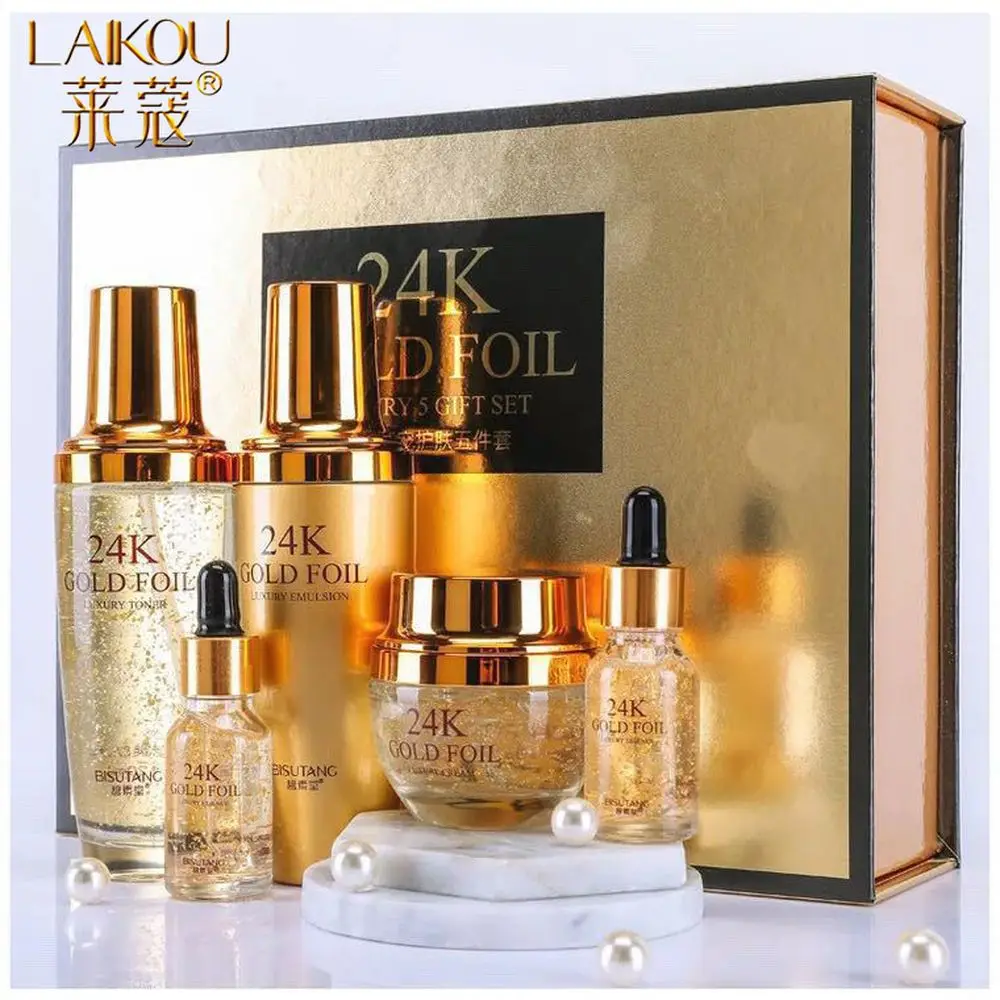 LAIKOU 5PCS 24K Gold Nicotinamide Skin Care Set Repairing Moisturizing Whitening Face Tonic Cream Anti-Aging Face Essence Care
