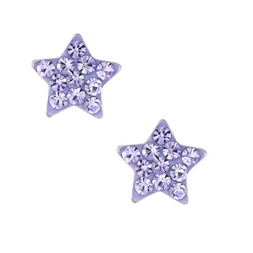Laimons Orecchini per bambina, a forma di stella, con brillantini, viola, 9 mm, in argento Sterling 925