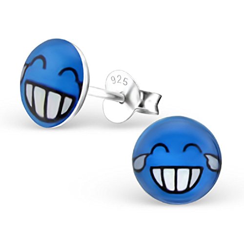 Laimons Kids Orecchini a pressione per bambini gioielli per bambini Faccina design disco Forma a disco Blu Argento Sterling 925
