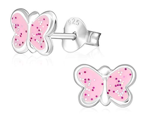 Laimons Kids Orecchini a pressione per bambini gioielli per bambini Farfalla Rosa Con brillantini Argento Sterling 925