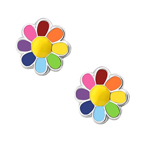 Laimons Kids Orecchini a pressione per bambini gioielli per bambini Fiore colorato Argento Sterling 925