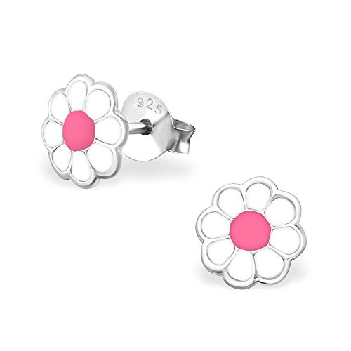 Laimons Kids Orecchini a pressione per bambini gioielli per bambini Fiore margherita Bianco, Rosa Argento Sterling 925