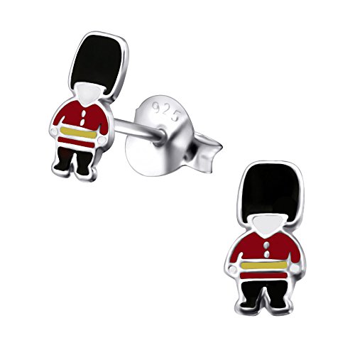 Laimons Kids Orecchini a pressione per bambini gioielli per bambini soldato britannico Nero, Rosso, Giallo Argento Sterling 925