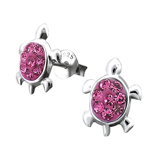 Laimons Kids Orecchini a pressione per bambini gioielli per bambini Tartaruga finitura lucida Con brillantini Argento Sterling 925
