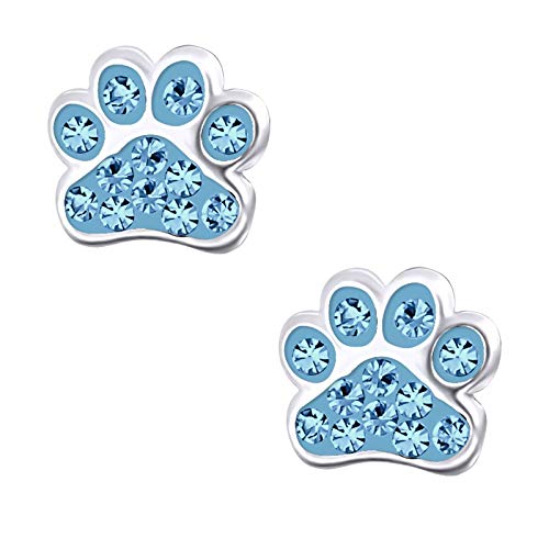 Laimons Kids Orecchini a pressione per bambini gioielli per bambini Zampa di cane Blu Chiaro Con brillantini Argento Sterling 925