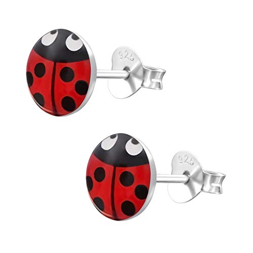 Laimons Orecchini a pressione da donna gioielli da donna Coccinella design disco Forma a disco Rosso, Nero Argento Sterling 925