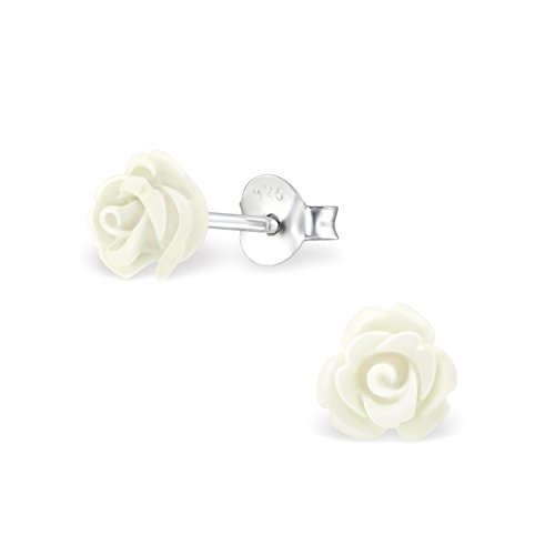 Laimons Orecchini a pressione da donna gioielli da donna Rosa fiore Bianco pastello Argento Sterling 925