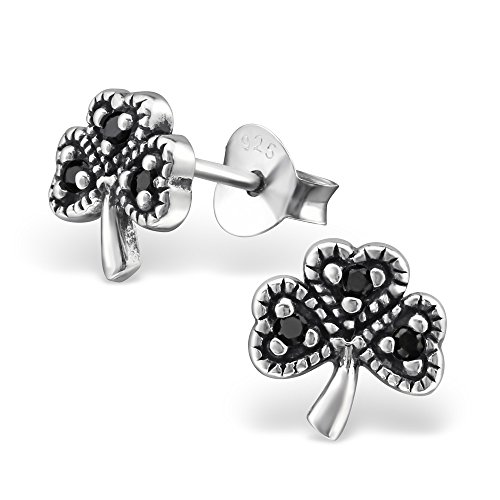 Laimons Orecchini a pressione da donna gioielli da donna Quadrifoglio ossidato Nero Zirconi Argento Sterling 925