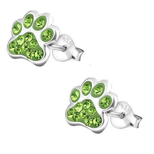Laimons Kids Orecchini a pressione gioielli per bambini Zampa di cane Verde Chiaro Con brillantini Argento Sterling 925