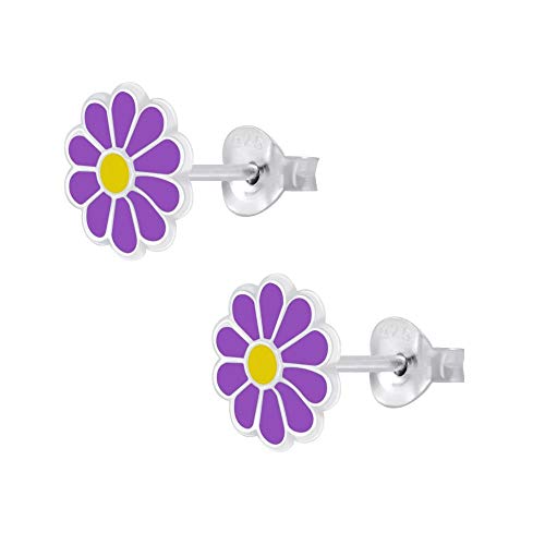 Laimons orecchini ragazza fiore fiore fiore 8 mm lilla giallo in argento Sterling 925