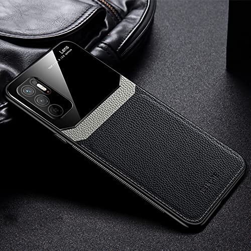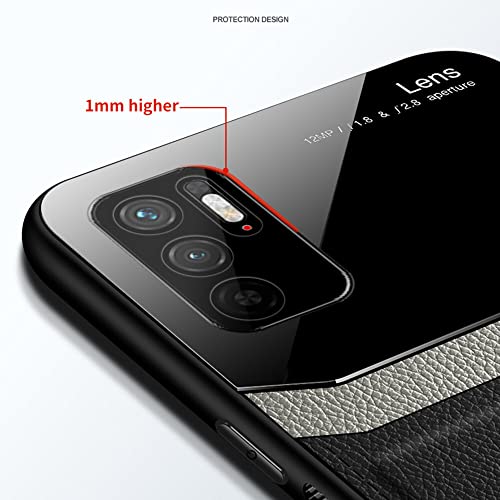 LaimTop Custodia Xiaomi Poco M3 Pro 5G, sottile Litchi Texture antiscivolo TPU Bumper Hybrid Glass Lens Custodia protettiva per Xiaomi Poco M3 Pro 5G Nero