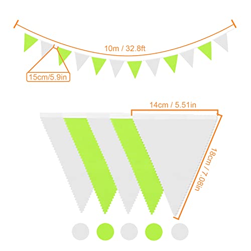 【Ampie Applicazioni】Le bandierine bianco e verde essere utilizzata per uso interno ed esterno, come per decorare festa di compleanno, party da giardino, matrimonio, spettacolo per bambini, spettacolo nuziale o altri eventi speciali.