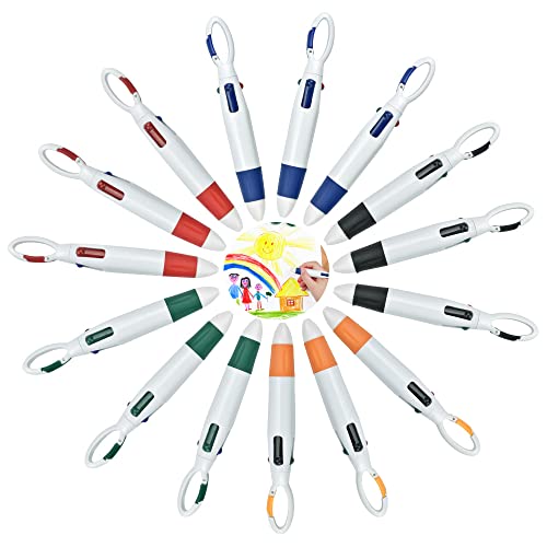 LAISHUNHE 15 Pezzi Penna a Sfera Multicolore Biro Multicolore a 4 Colori Penne a Sfera a Scatto 4 Colori Penne Multicolori Penne A Sfera Retrattili Con Portachiavi Con Fibbia Sulla Parte Superiore