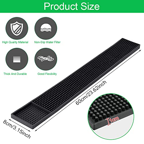 【Pratico tappetino da bar】 Il nostro tappetino da bar nero è lungo 60 cm, largo 8 cm e ha un design rettangolare. Fornire ampio spazio per servire le bevande. Questa dimensione è abbastanza grande da contenere la maggior parte dei tipi di tazze e può contenere più stili di tazze contemporaneamente. La lunghezza non è molto lunga per non occupare spazio prezioso sul piano del bar. Ideale per tappetini da bar antiscivolo.