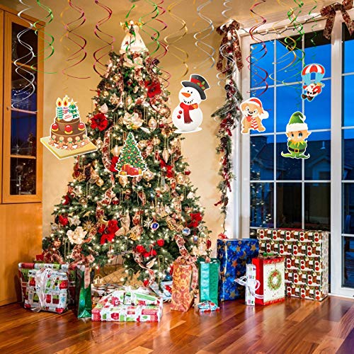 LAITER 33 PCS Natalizio Spirale Ornamento Natale Decorazioni Tema Albero Natale Babbo Fiocco Neve Pupazzo per Soffitto Porta Veranda Muro Balcone
