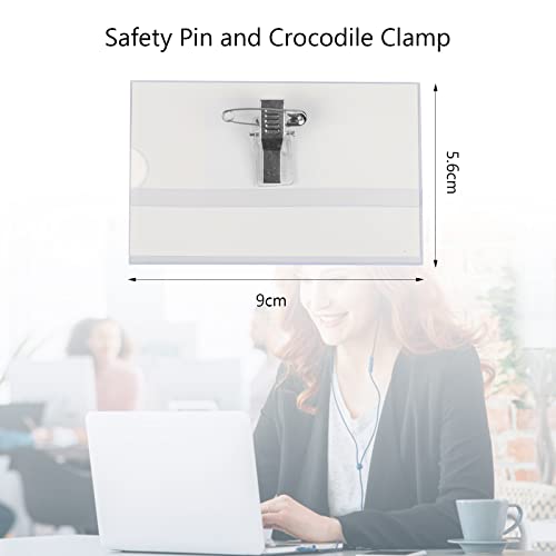 LAITER 60 PCS Porta Badge Plastica PVC Trasparente con 60 PCS Clip Metallico per Appendere Carte Identità Supporti Badge Porta Tessera Carta di Credito Ufficio Scuola Ospedale