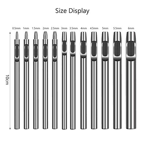 LAITER 12 PCS Punzoni per Pelle Cuoio Fori Vuoti Rotondi Acciaio al Carbonio Pelle Strumento Lavorazione Craft Punzoni per Pelle Cinturino per Orologio Tela Occhiello