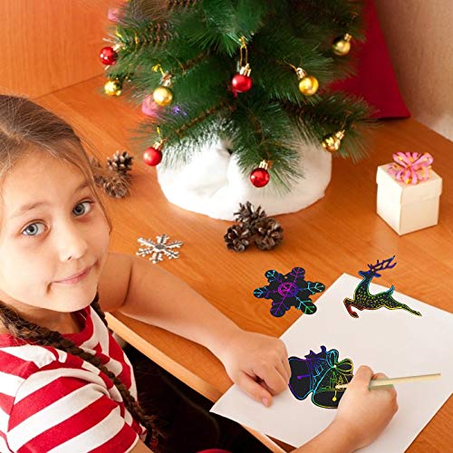LAITER 48 PCS Scratch Art Natale Cappello Natale Pupazzo Neve Alce Diversi Tipi Colorato Graffio Natalizio Decorazioni Appeso da Porta Finestra Albero Segnalibro Artigianato Fai da Te Regalo
