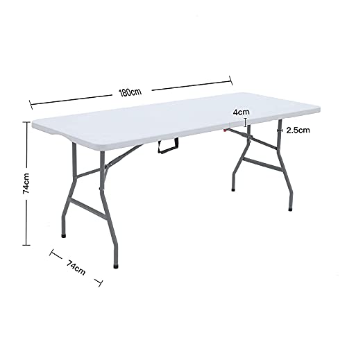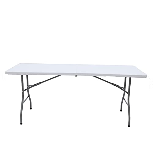 Lakhow 180CZ - Tavolo pieghevole da 6 piedi in plastica per interni ed esterni, per picnic, barbecue, feste, granito bianco (bianco)