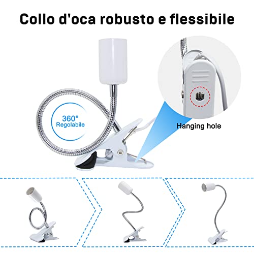 LAKONEI Portalampada E27 con Pinza, 35cm Flessibile Metallo Collo di Cigno Lampada con Clip Lampada LED Morsetto con Interruttore Dimmerabile per Tavolo, Lettura da Comodino, Ufficio, Bianco