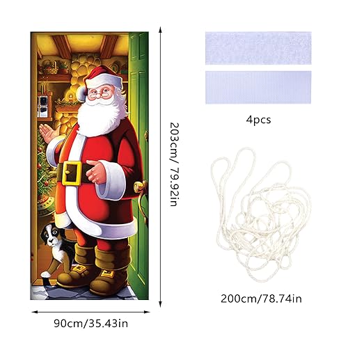 LAKSOL Copriporta Babbo Natale Decorazione per Porta Natalizia Copriporta da Appendere Striscione Natalizio Sfondo Natalizio con 4 Velcro per Festa di Natale 91x203 cm