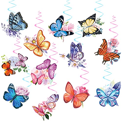 LAKSOL 12 Pezzi Decorazioni a Spirale Farfalle Decorative da Appendere Stelle Filanti per Soffitto Decorazioni a Spirale con Farfalla per Baby Shower Festa di Compleanno Matrimonio