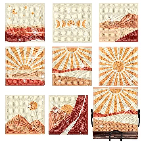 LAKSOL Sottobicchieri in Sughero, 8 Pezzi Diamond Painting Sottobicchiere con Supporto in Metallo, Sottobicchiere al Tramonto Assorbente per Tazze, Vasi, Bevande