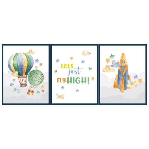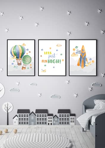 Laladas | Poster per la cameretta dei bambini A4 per ragazzi e ragazze, set da 3 pezzi composto da palloncini, un razzo e una scritta