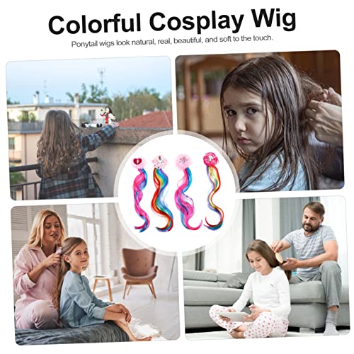 LALAFINA 4Pcs Costume Barrettes Bambini Parrucca Arco Intrecciato Archi Partito Principessa Estensione Cosplay Finto Unicorno Favori Casuali Vacanze Coda Di Cavallo