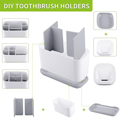 LALAGO Porta spazzolino Set di bicchieri per dentifricio in plastica, organizer per il bagno, porta dentifricio per il bagno senza trapano, grigio chiaro