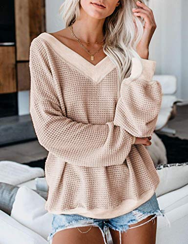 Lalala Maglione da donna con scollo a V, oversize, senza spalline, a maniche lunghe albicocca S