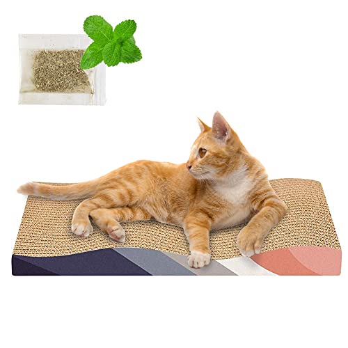 Misure delle taglie: la dimensione è di 43 x 21 x 3,5 cm, per il tiragraffi in cartone, offriamo forme e motivi diversi tra cui scegliere, design semplice e moderno si adatta praticamente ovunque, tra cui casse, pavimento e qualsiasi stanza della tua casa.