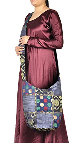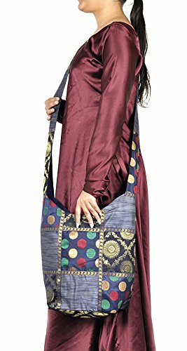 Lalhaveli Indian Design Donna Boho Hippie Side Bag, Blu, 30 x 38 Cm