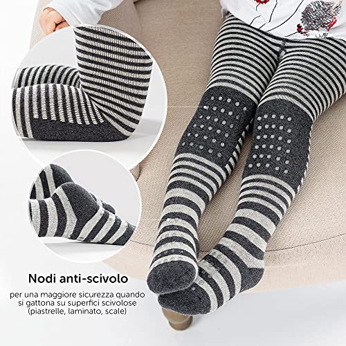 LaLoona Calze Antiscivolo Bambino, Collant Bambina Cotone con Gommini Antiscivolo - Calzamaglia Bambina Cotone - Unisex - righe grigio