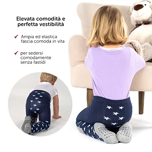 LaLoona calzini antiscivolo bambino, collant bambina cotone con gommini antiscivolo - (12-24 mesi) - stelle azzurro