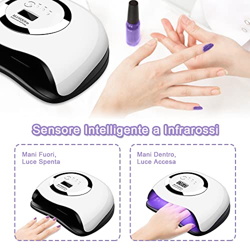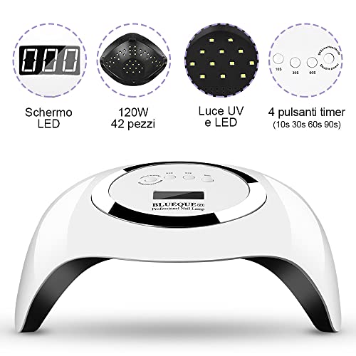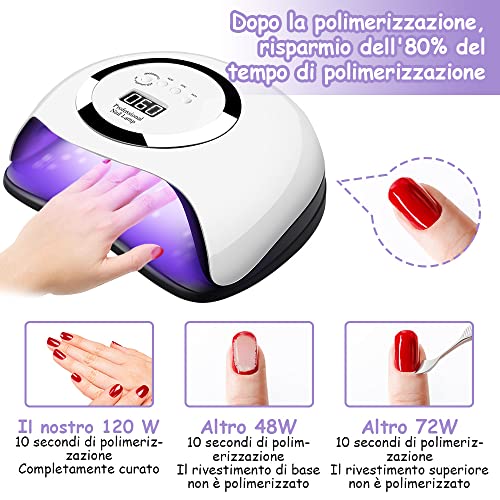 LaLuna Lampada UV Asciugatrice per unghie, 120W UV LED Asciugatrice automatica per unghie, asciugatura rapida con 4 timer da 10s/30s/60s/99s, LCD, base rimovibile, per smalto gel semi permanente