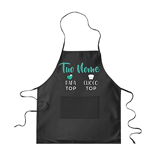 LaMAGLIERIA Grembiule personalizzato uomo donna tuo nome Papà Top Cuoco Top, Nero