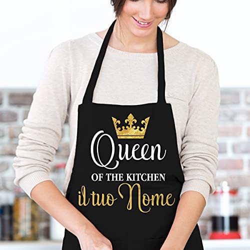 LaMAGLIERIA Grembiule personalizzato uomo donna tuo nome Queen Of Kitchen - Grembiule da pasticcere, Nero